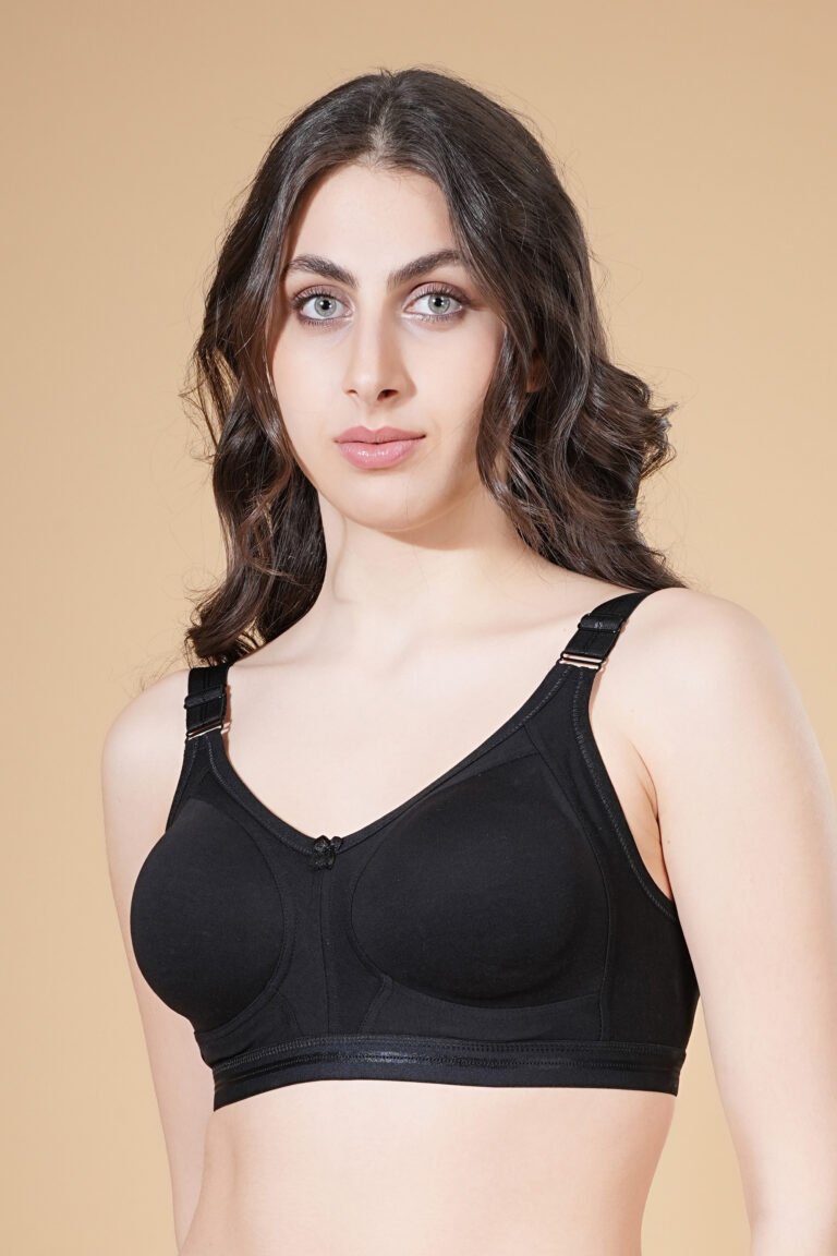 Non-Padded Non-Wired Full Coverage Bra in Black – Cotton